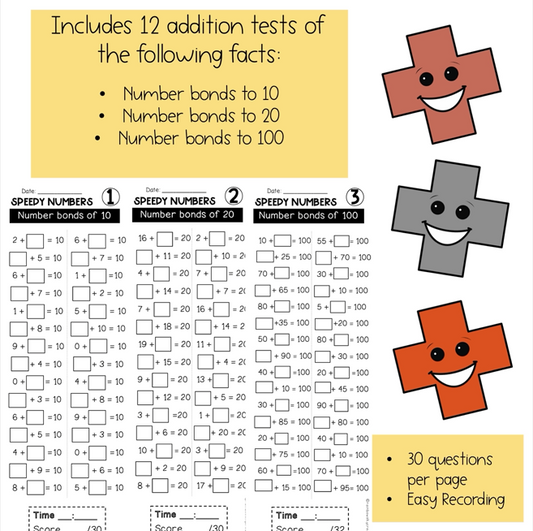 Speedy Numbers Booklet | Addition | Facts Up To 10, 20, 30