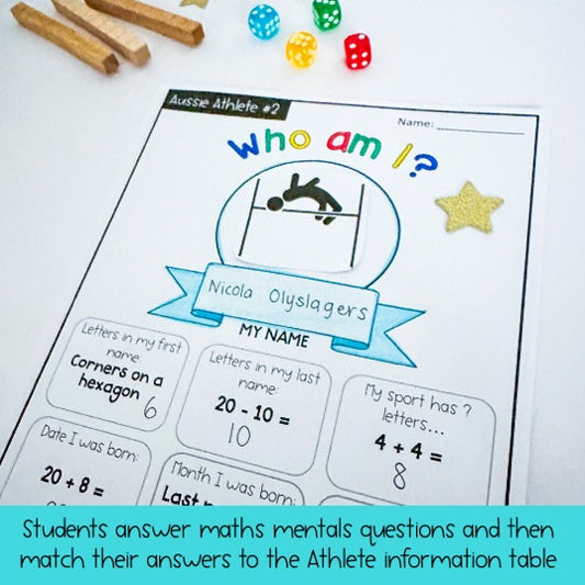 Olympic Games Maths Activity | Australian Athletes | Years 1-2