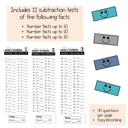 Speedy Numbers Booklet | Subtraction | Facts Up To 10, 20, 30