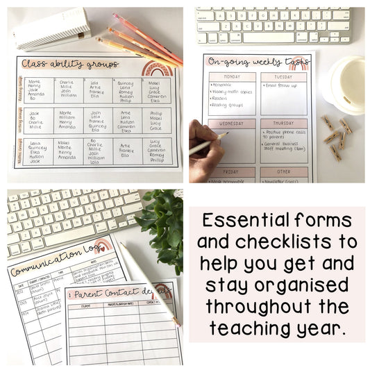 Teacher Checklists & Forms | Back To School [Neutral Rainbow Theme]