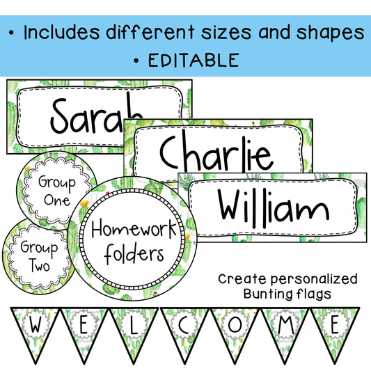 Editable Labels | Classroom Labels | Name Tags [Cactus & Succulent Theme]
