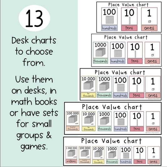 Pastel Place Value Desk Charts | Mini Place Value Desk Plates