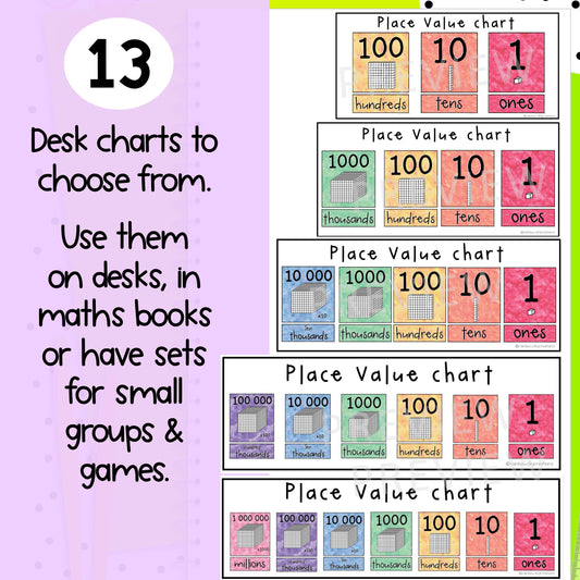 Place Value Desk Charts | Mini Place Value Desk Tags [Watercolour Theme]