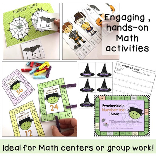 Halloween Math Centre Pack | No Prep | October Math | Grades 3-4