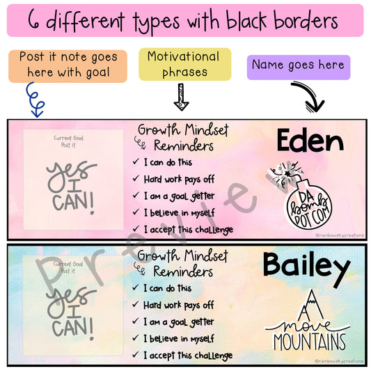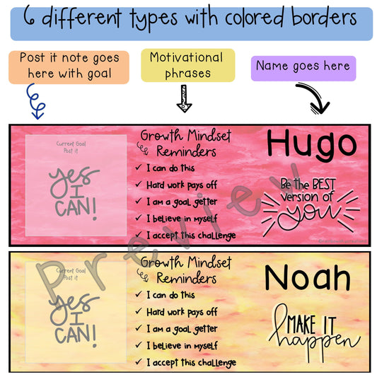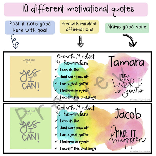 Growth Mindset Desk Plates | Name Plates [Watercolour theme]