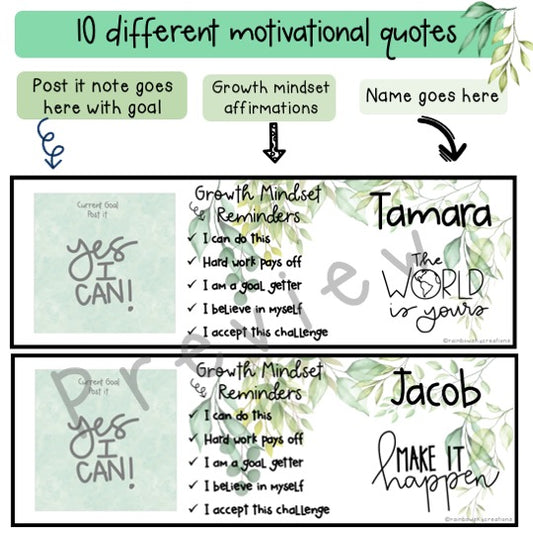 Growth Mindset Desk Plates | Desk Name Tags [Eucalyptus Theme]