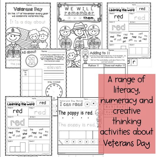 Veterans Day Activities | Reading Writing Math November | Kindergarten, Foundation, Prep