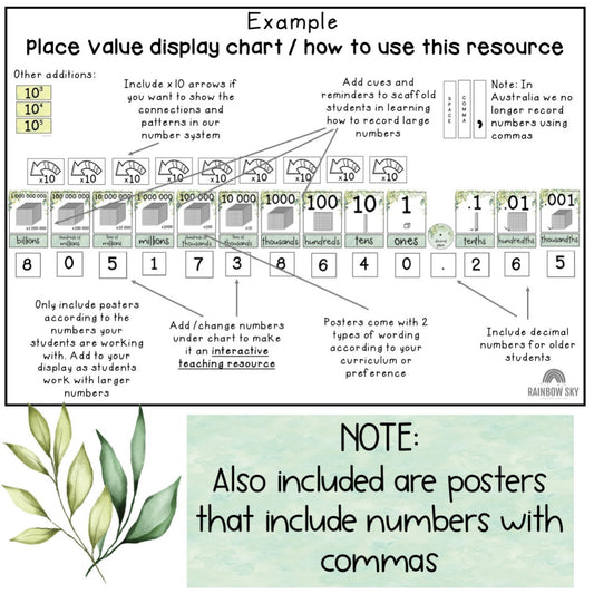 Place Value Chart | Interactive Place Value Posters [Eucalyptus Theme]