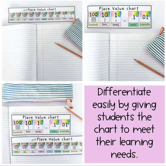 Place Value Desk Charts | Mini Place Value Desk Tags [Splash Rainbow Theme]