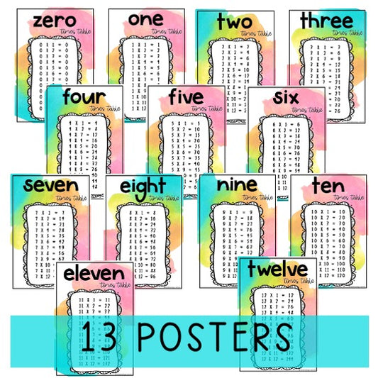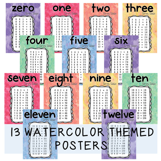 Times Table Posters | Multiplication Posters [Watercolour Theme]