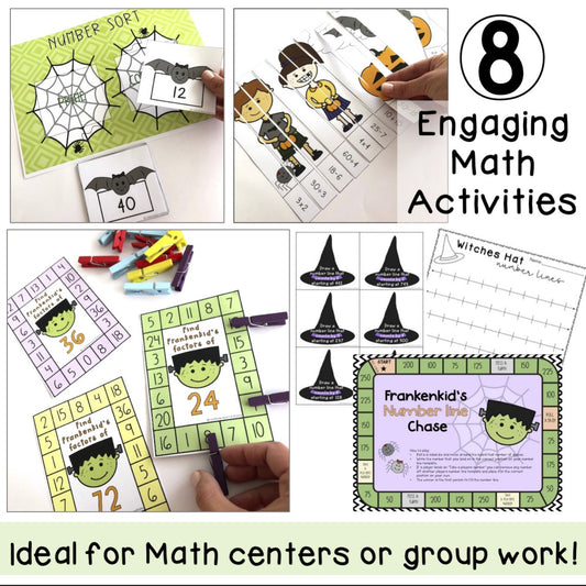 Halloween Math Centre Pack | No Prep | October Math | Grades 3-4
