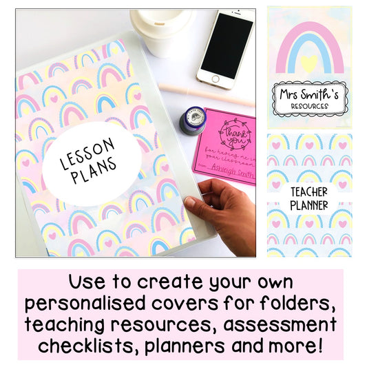 Editable Rainbow Binder Covers | Folder Covers [Pastel Rainbow Theme]