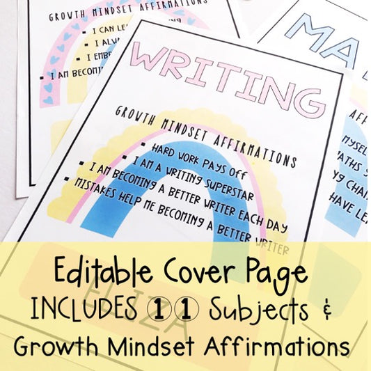 Growth Mindset Editable Book Covers [Pastel Rainbow Theme]