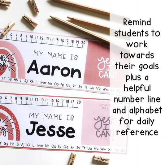 Goal Setting Desk Plates | Desk Name Tags [Neutral Rainbow Theme]
