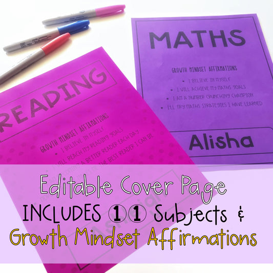 Growth Mindset Editable Book Covers | Editable Subject Page Covers