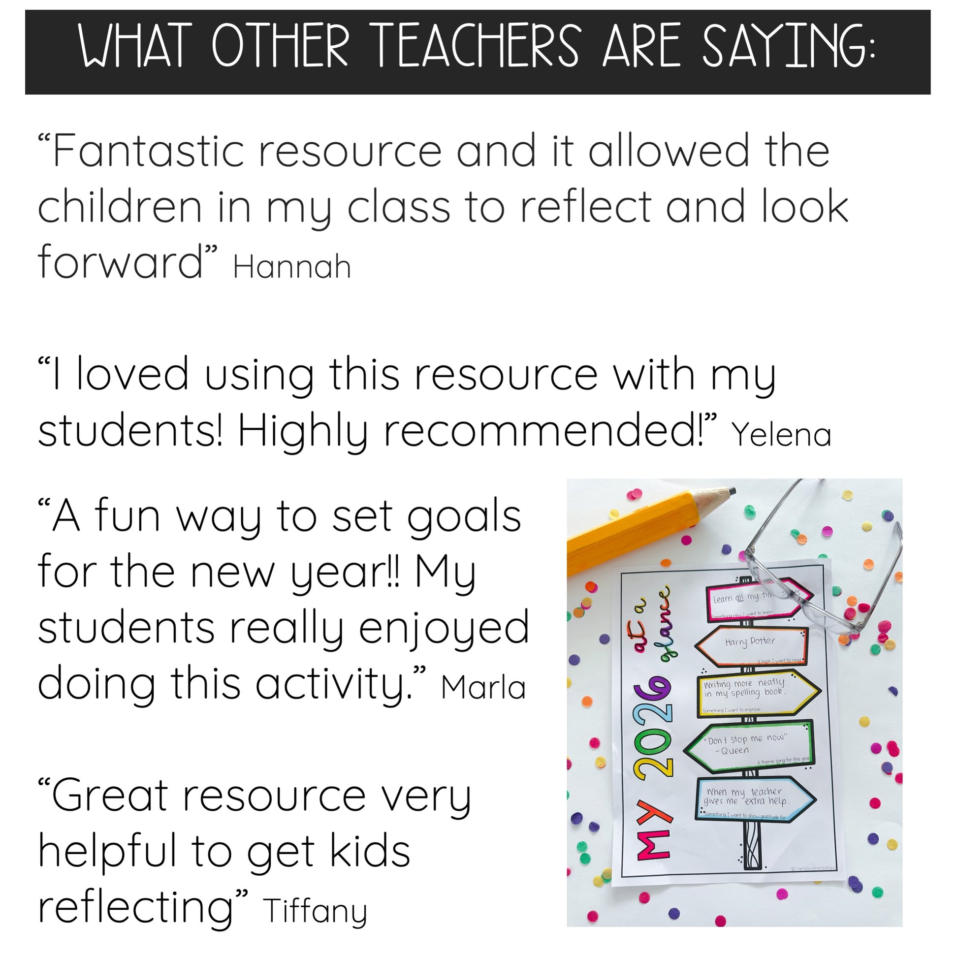 The perfect activity to ring in the new year with your students. We often set goals with our students but this is a reflection activity that is a little different to common goal setting tasks. Plus, it might help you learn a little more about your students and their interests.