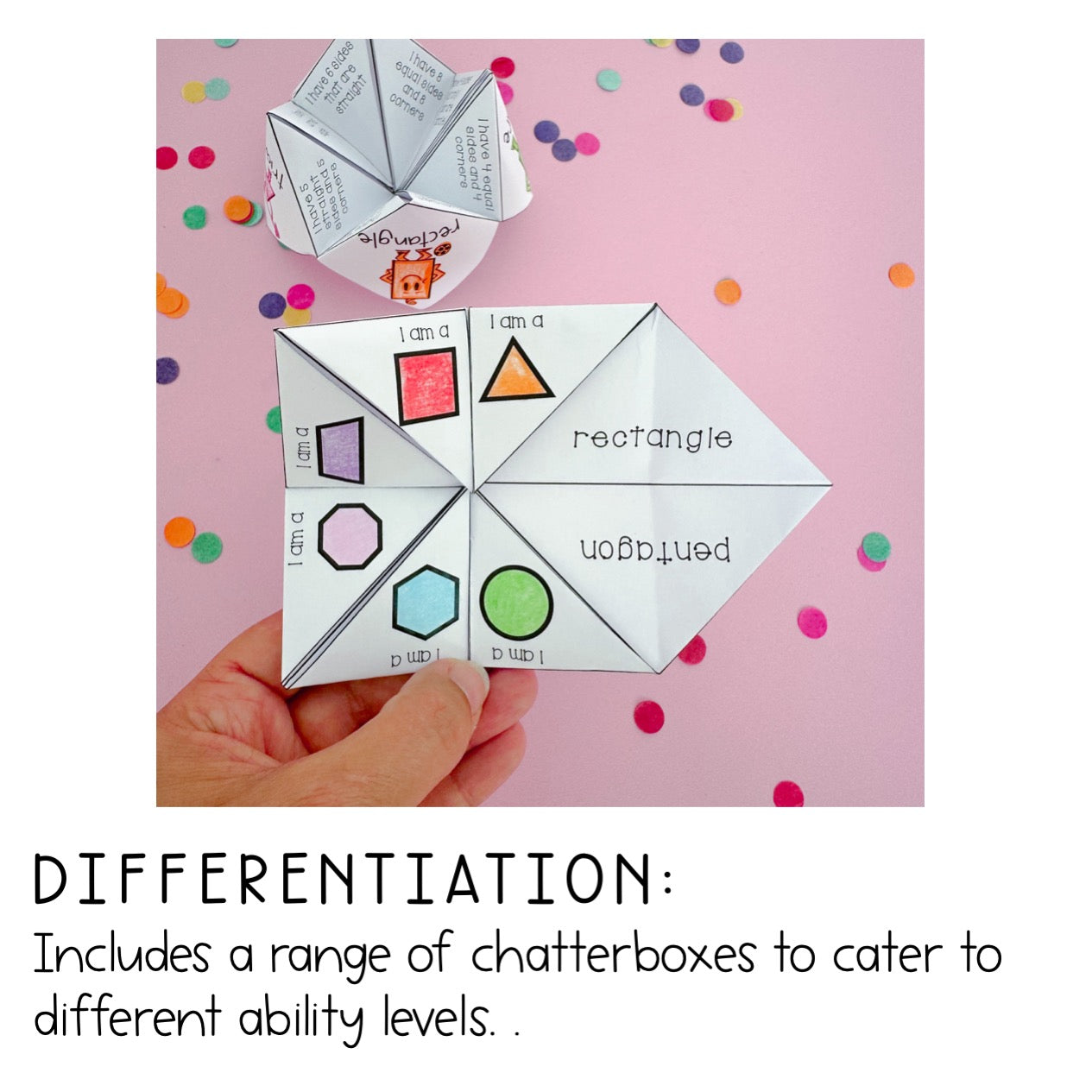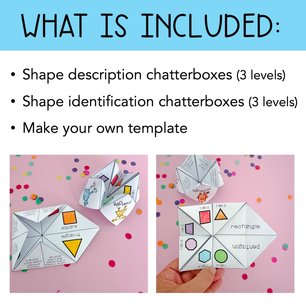 Differentiated to meet your students where they are, these chatterboxes make learning shapes accessible and fun for all.