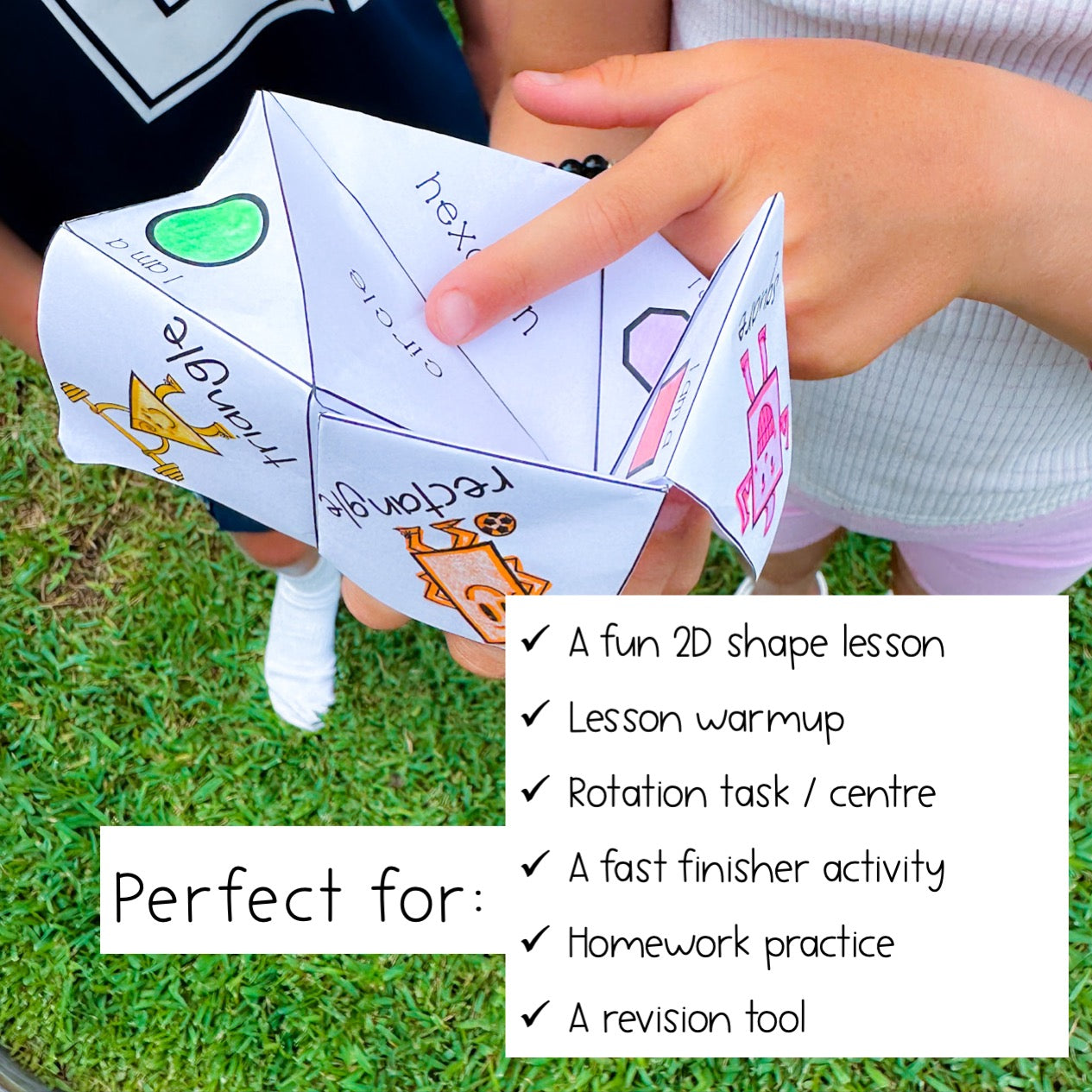 Looking for an exciting way to develop your students' geometry skills? These 2D Shape Chatterboxes are the perfect blend of learning and play! Designed to boost shape recognition and understanding, this hands-on resource will keep your students engaged while reinforcing essential maths concepts in a creative way.