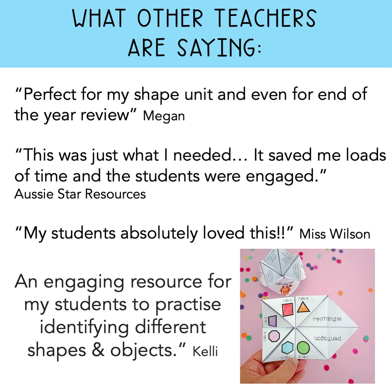 "An engaging resource for my students to practise identifying different shapes & objects.” Kelli
