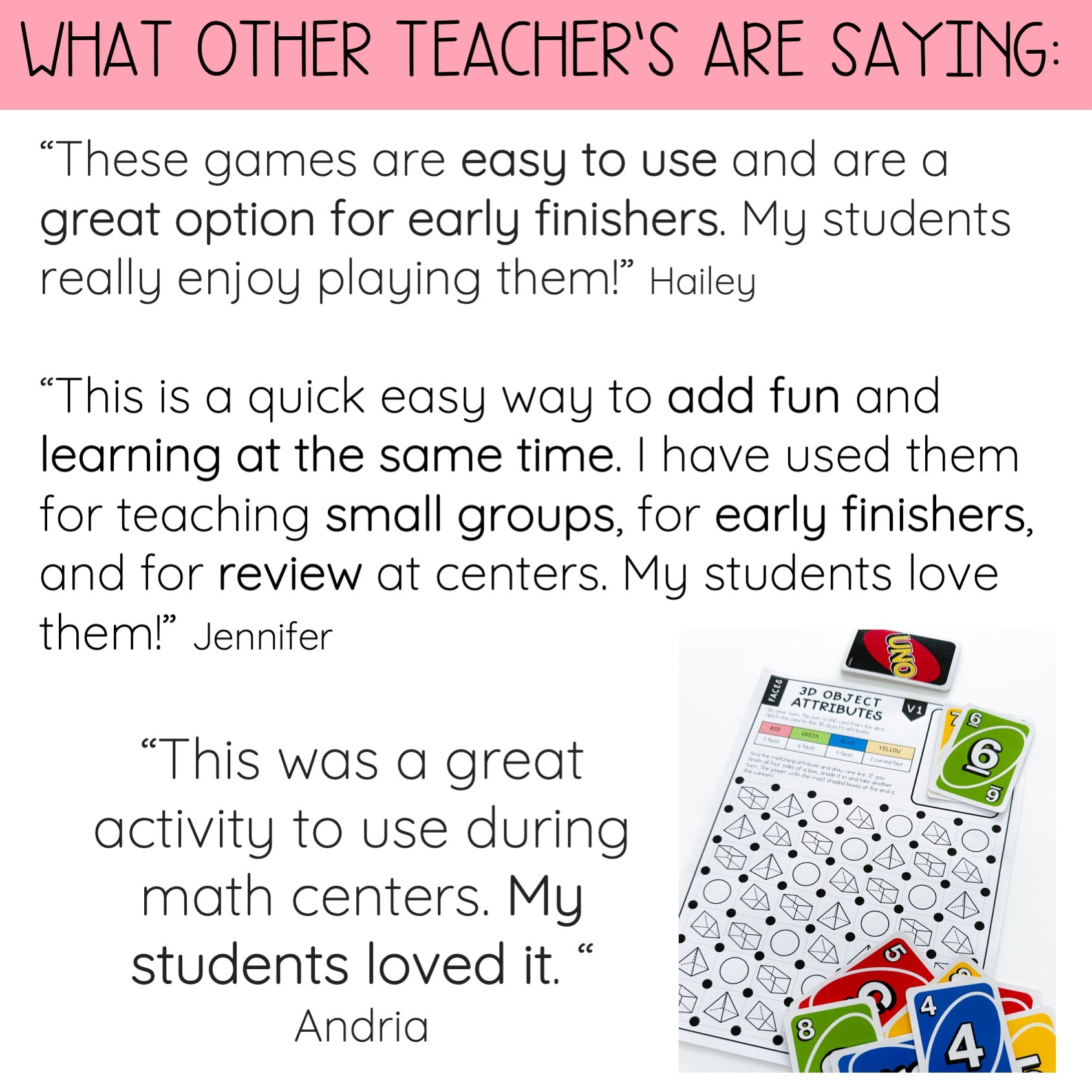 “These games are easy to use and are a great option for early finishers. My students really enjoy playing them!” Hailey