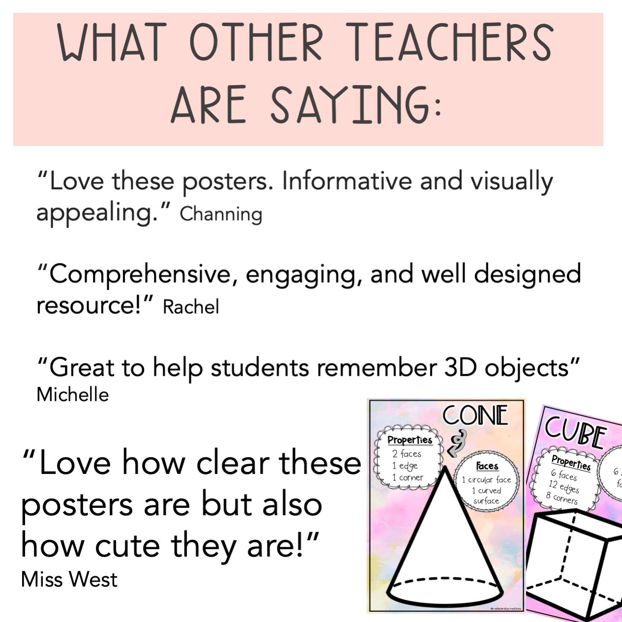 “Beautiful visuals to help kids remember their 3D objects” Nicole“Love how clear these posters are but also how cute they are! Thank you!” Miss Westworld