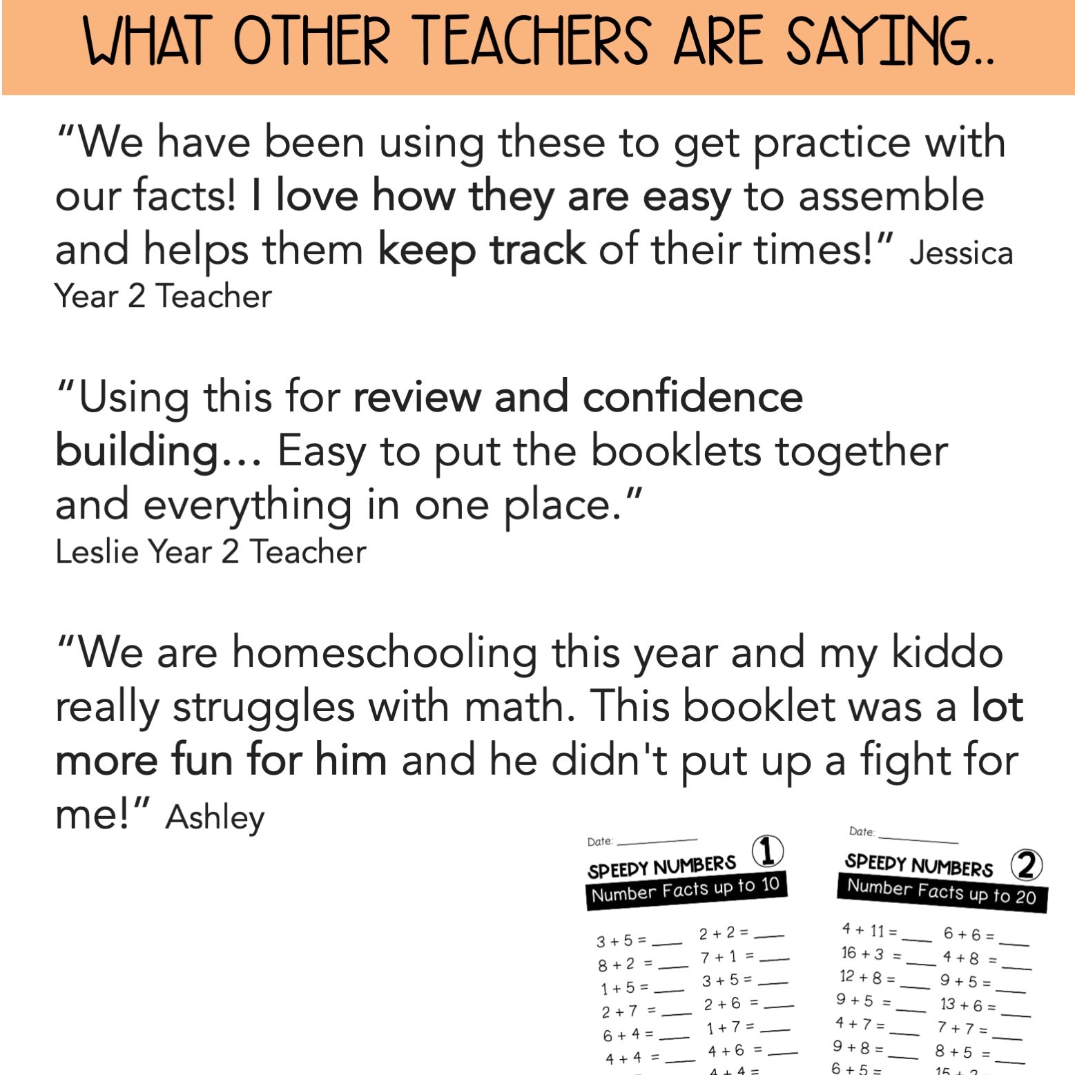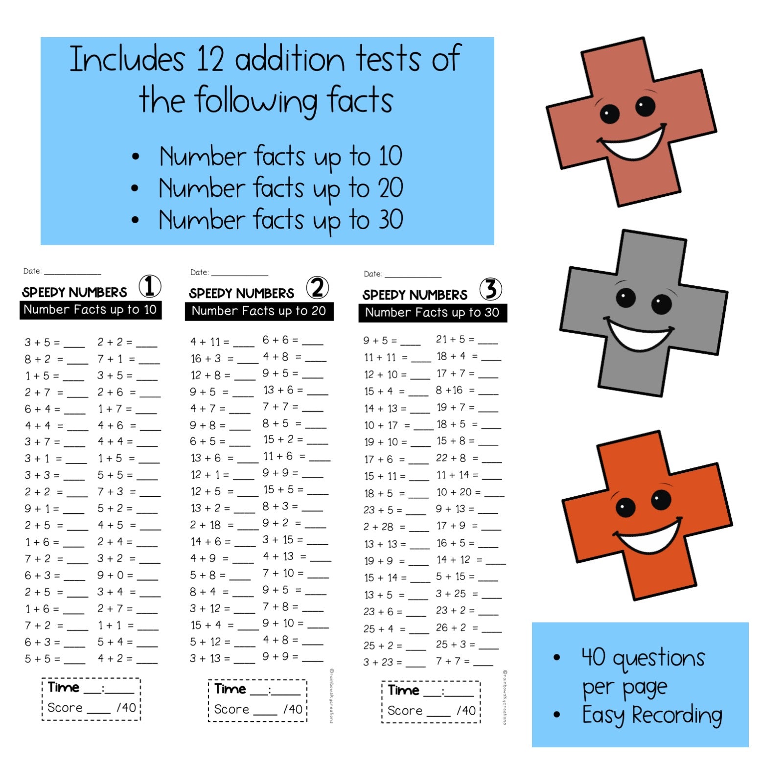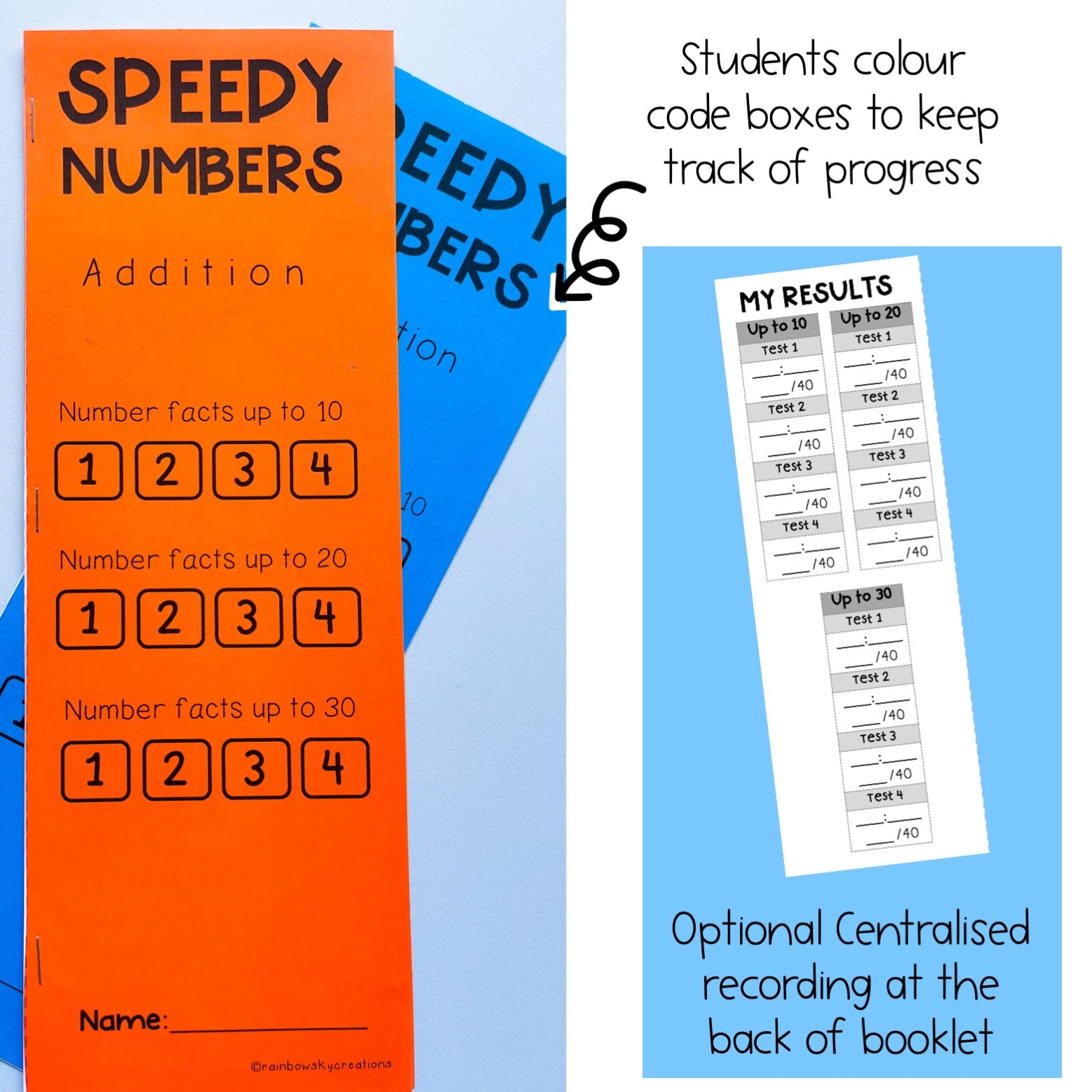 Speedy Numbers Booklet | Addition | Facts Up To 10, 20, 30