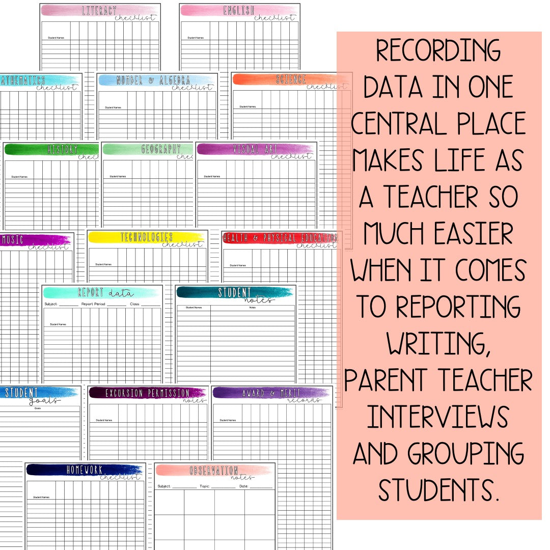 This document includes everything you need to get organised, assist you with report writing and recording all your student data!