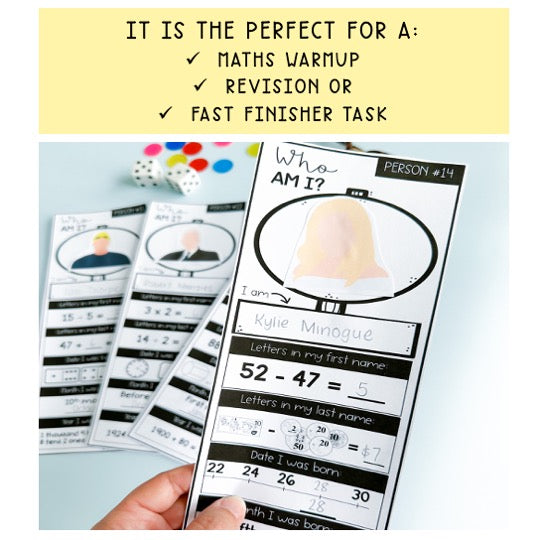This is the PERFECT Maths warmup, maths group activity, investigation, revision or fast finisher task. Your students will love solving each 'Who am I' while practising their maths skills and knowledge - Maths mentals for meaning!