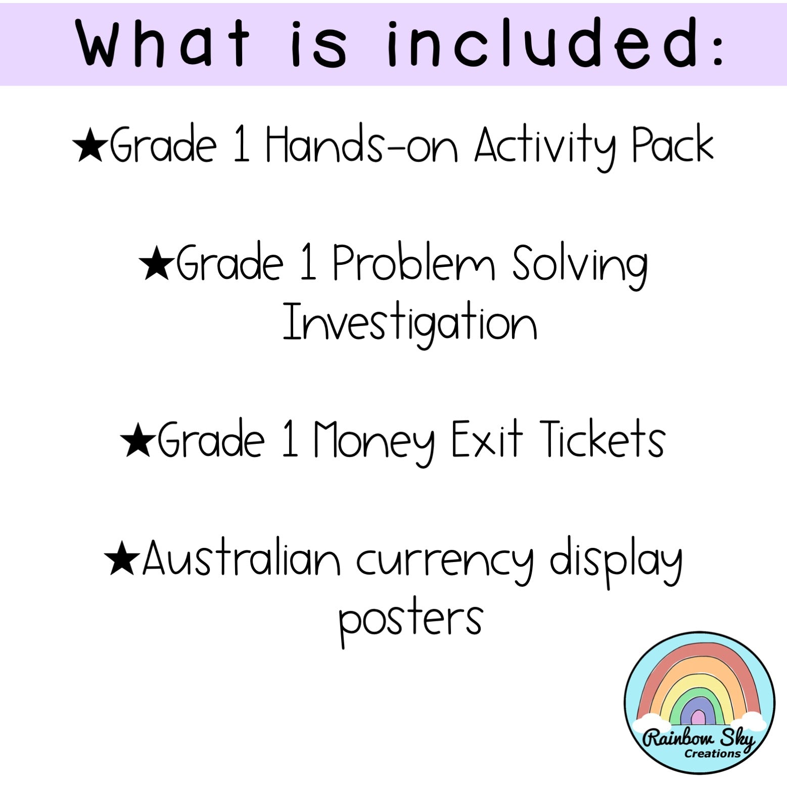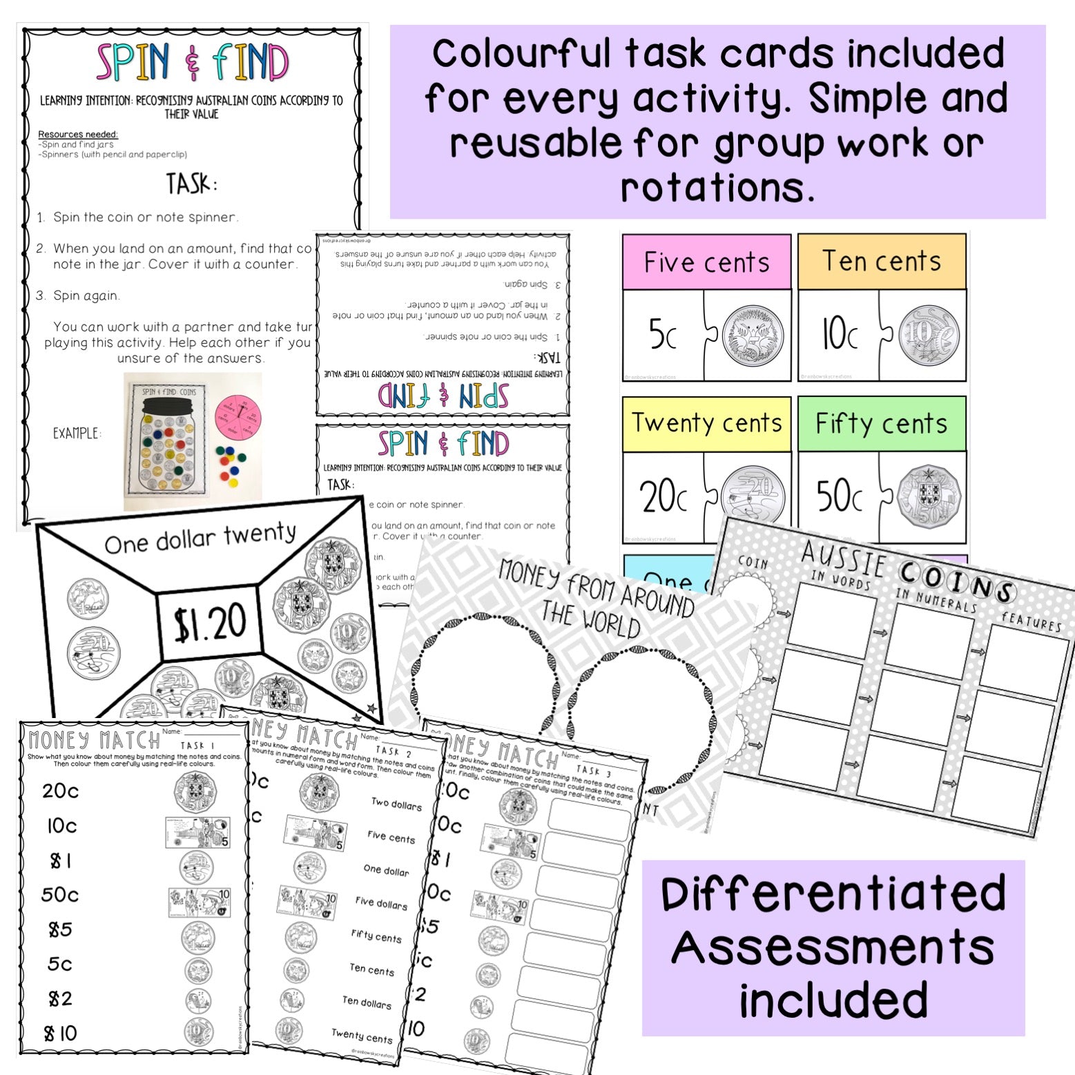 This bundle includes 4 of our popular money resources for Grade 1 as well as our Australian currency posters. Packs include easy opportunities for differentiation and a differentiation guide for teachers to suit all learners in your classroom. Also included is a range of assessments and teacher checklists to assist you with report writing.