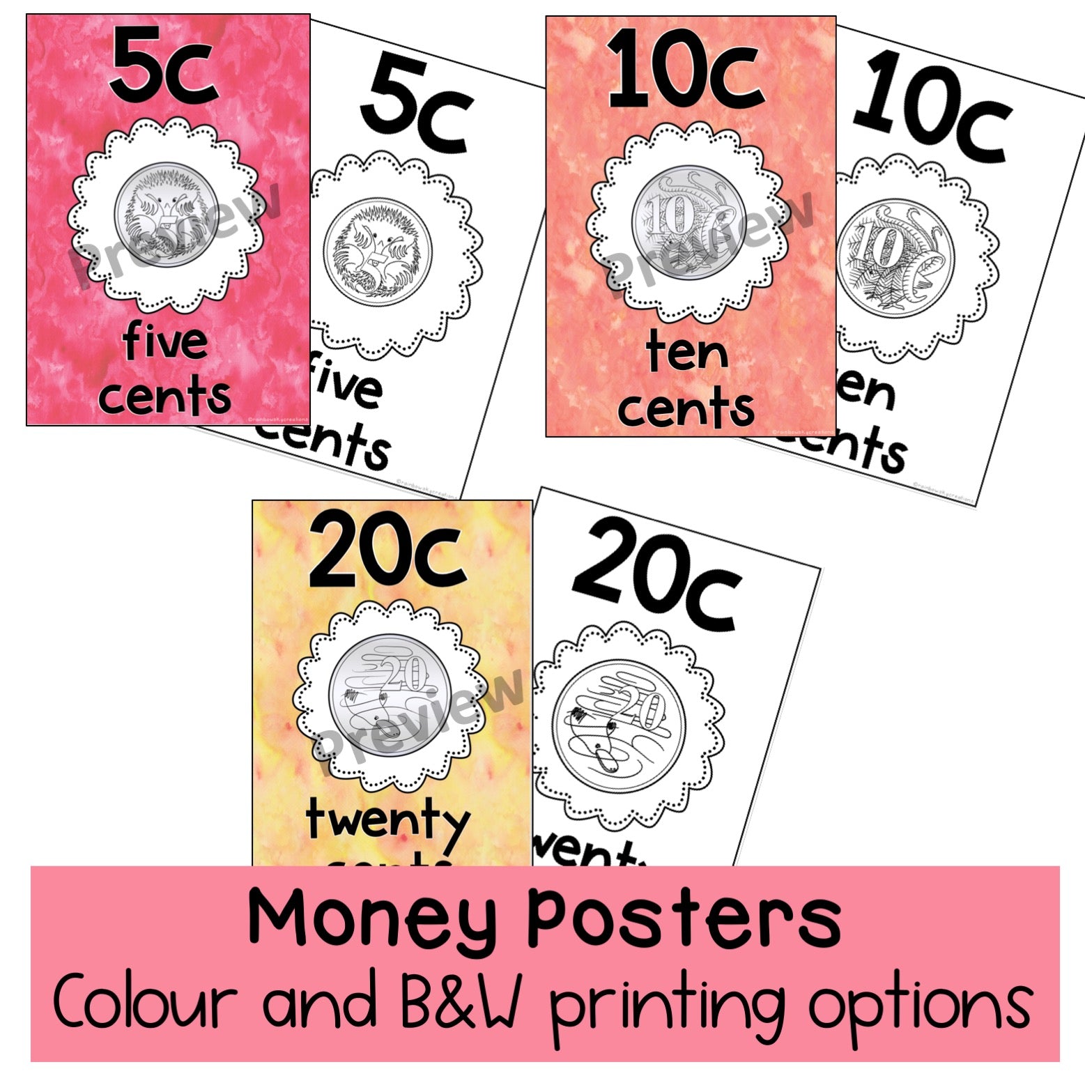 - Australian currency display posters (Watercolour Theme & Chalkboard Theme)