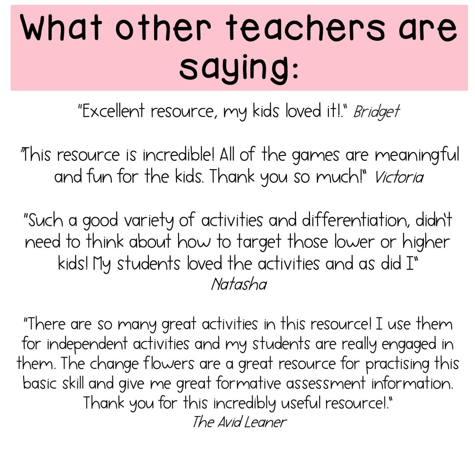 “There are so many great activities in this resource! I use them for independent activities and my students are really engaged in them. The change flowers are a great resource for practising this basic skill and give me great formative assessment information. Thank you for this incredibly useful resource!” The Avid Leaner