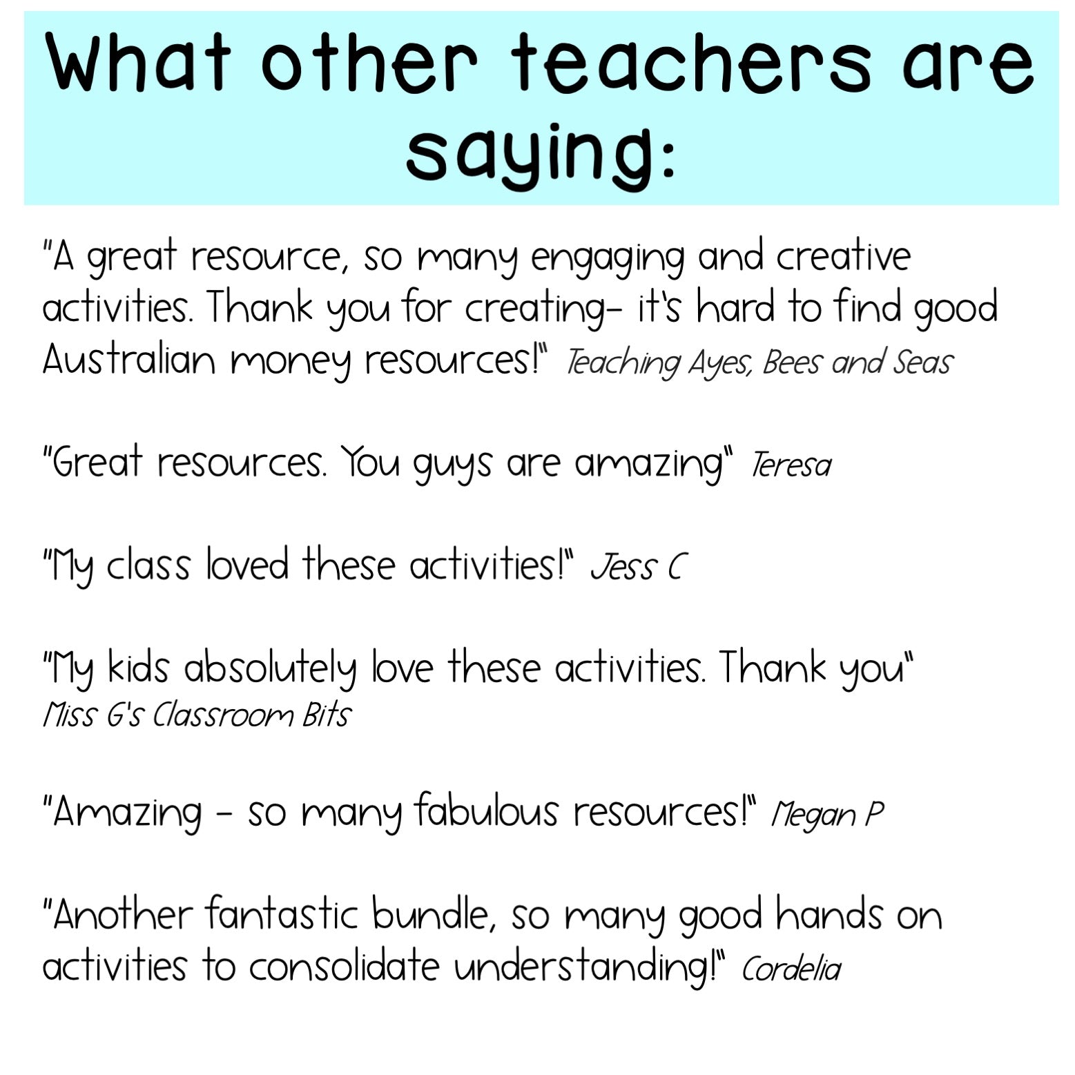 “A great resource, so many engaging and creative activities. Thank you for creating- it's hard to find good Australian money resources!” Teaching Ayes, Bees and Seas