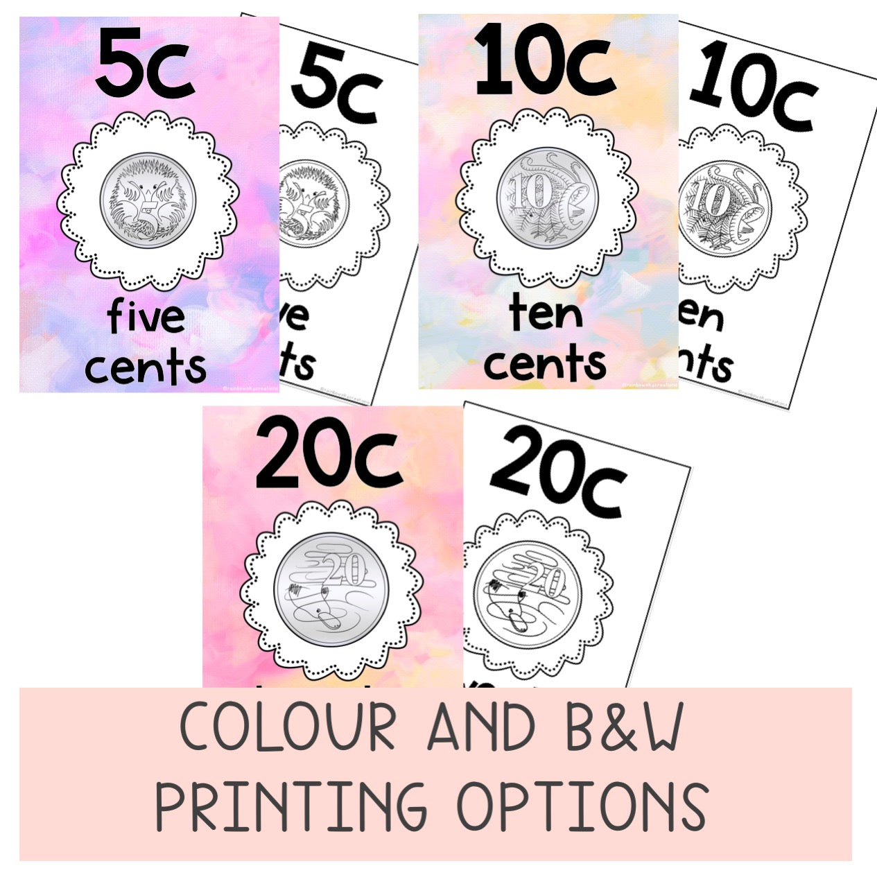 - 5c, 10c, 20c, 50c, $1, $2 coin posters