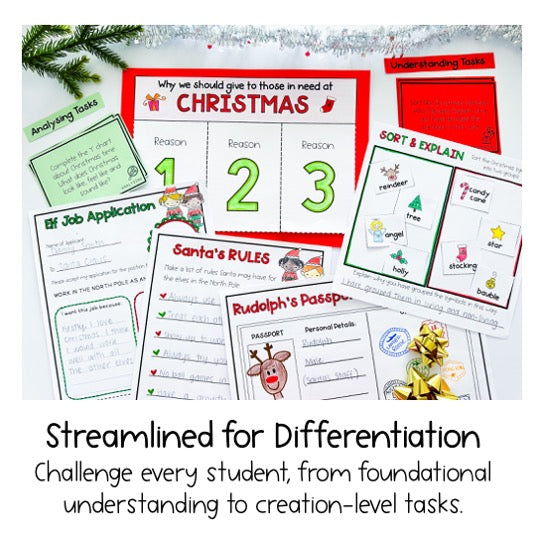 Get your students in the holiday spirit with this one-stop Christmas pack, perfect for developing creative and critical thinking skills! Designed for Kindergarten to Grade 2, this versatile resource includes both printable and digital versions of 18 Bloom’s Taxonomy activities to inspire and challenge young minds. With tasks that grow in complexity, you can easily adapt each activity to fit the needs of every learner in your classroom.