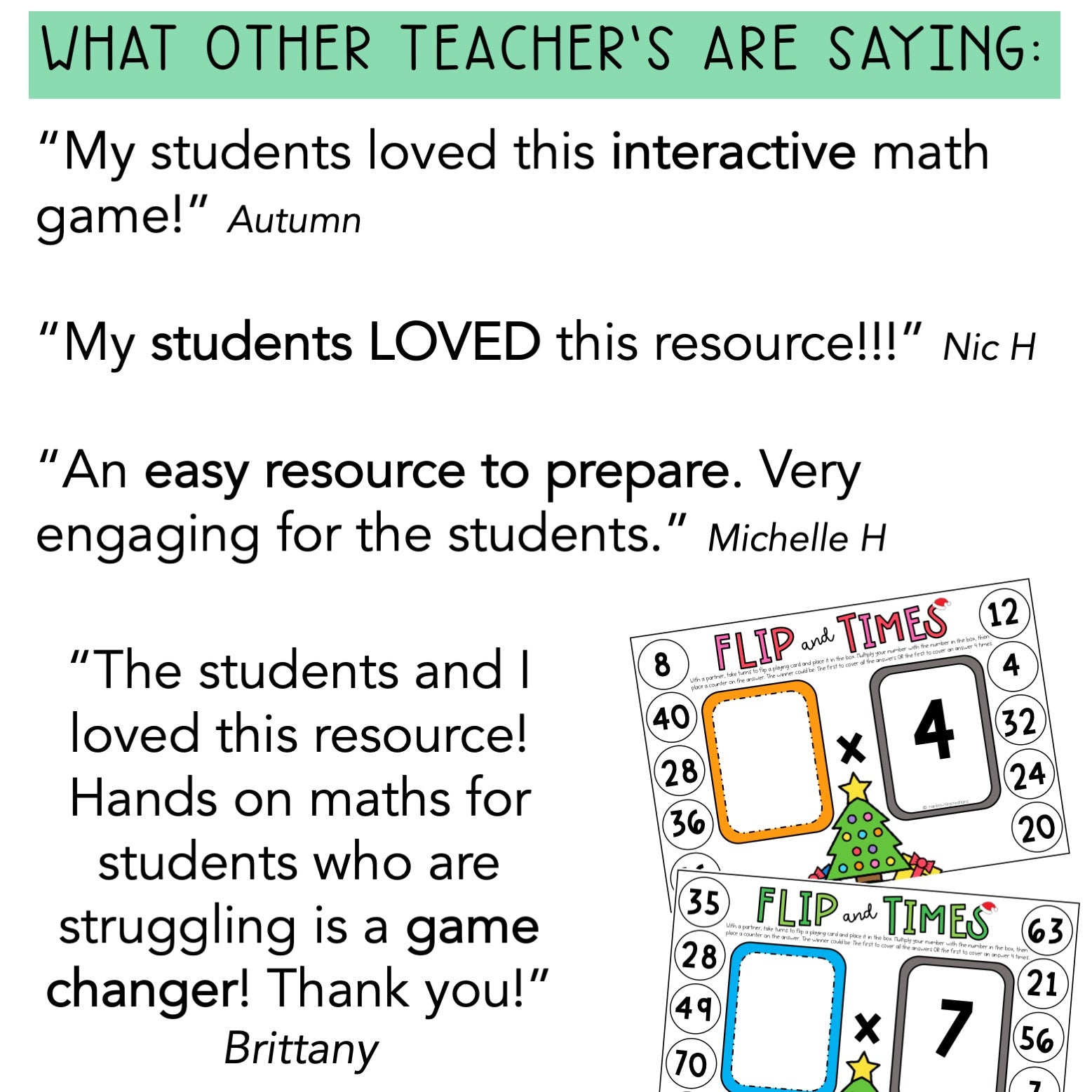 “The students and I loved this resource! Hands on maths for students who are struggling is a game changer! Thank you!” Brittany
