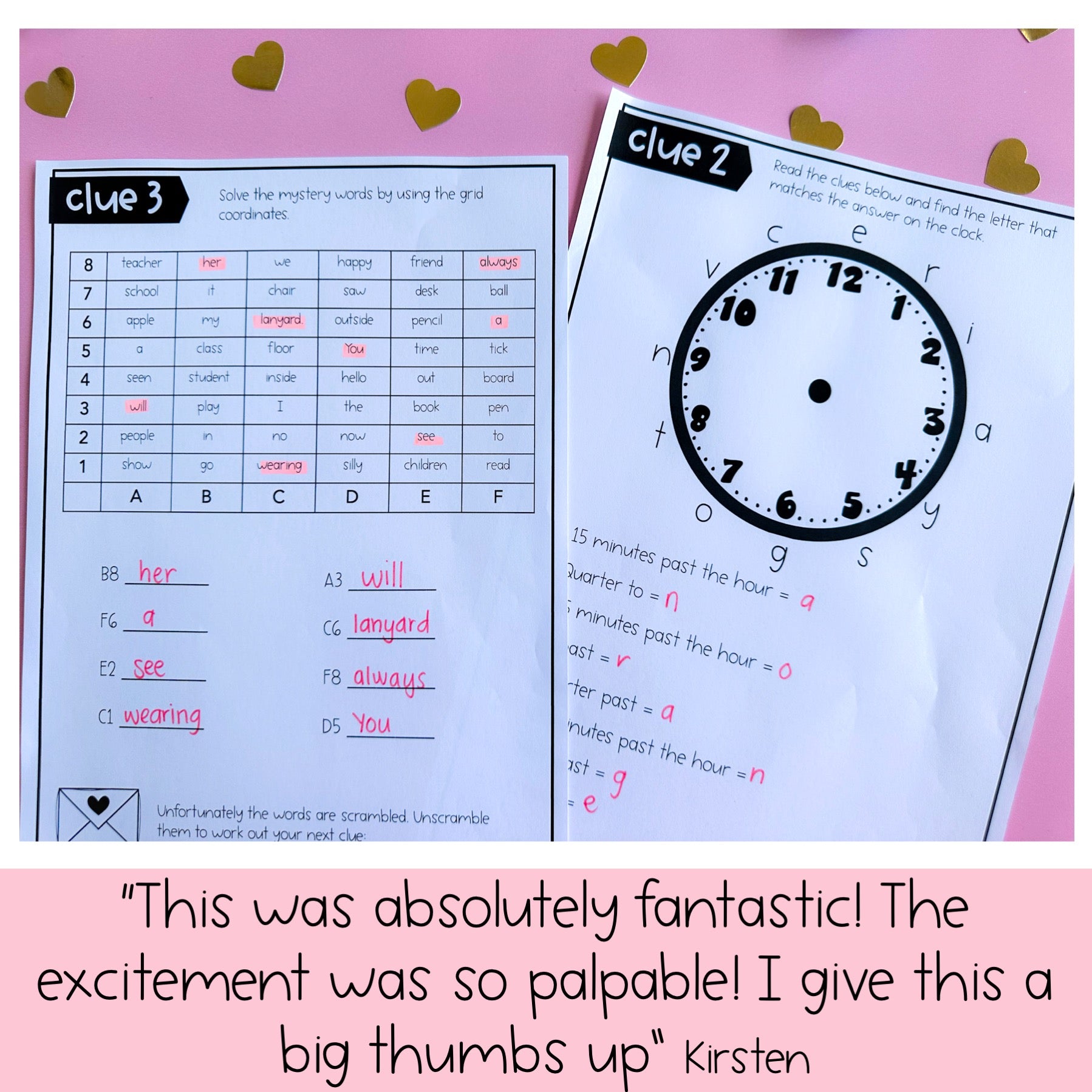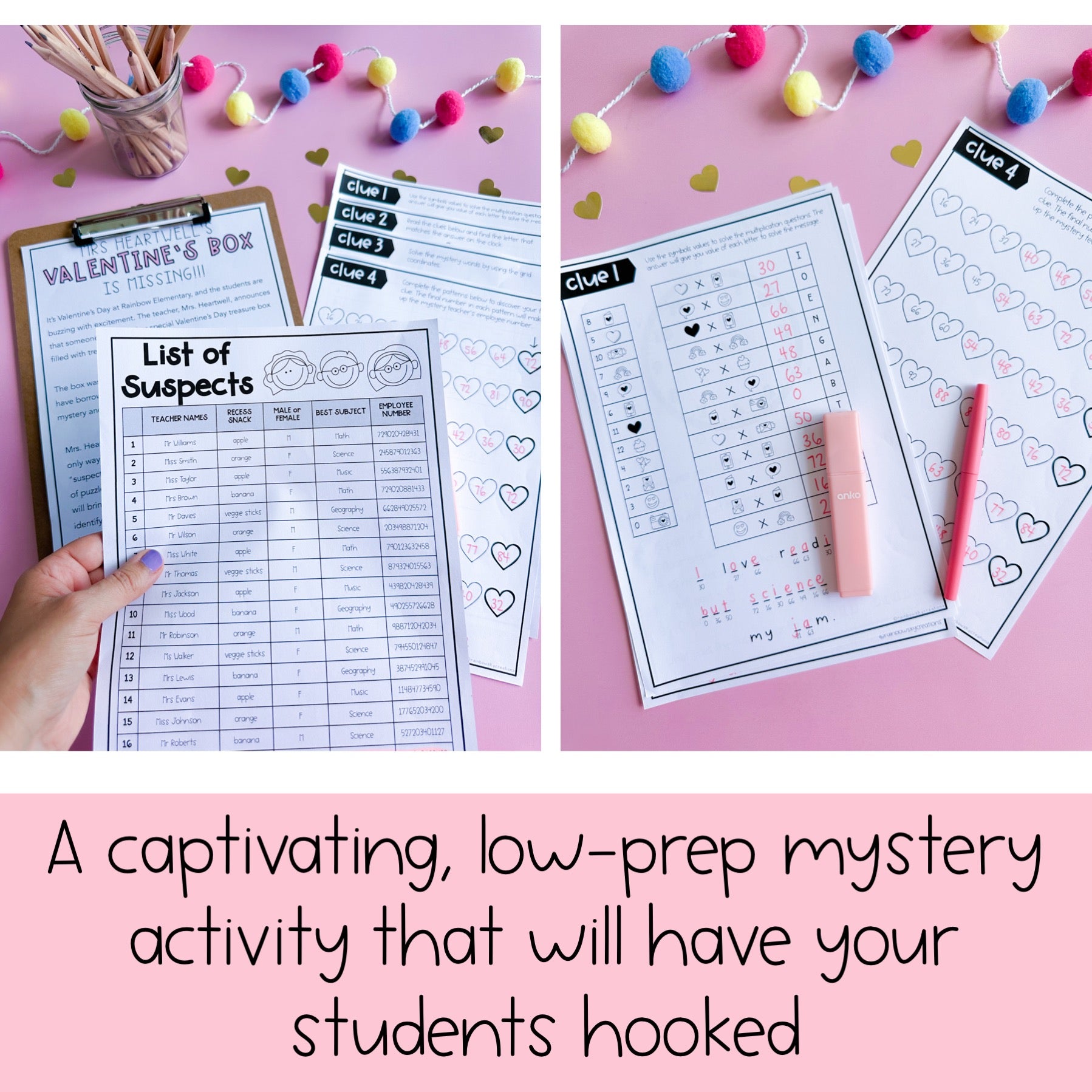 Crack the case of the missing Valentine's Day box! Engage your students with this Valentine's-themed mystery activity, where they’ll use their maths skills to uncover which teacher 'borrowed' their class Valentine's Day box filled with treats.