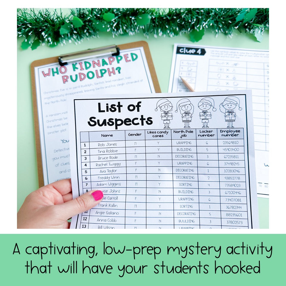 Turn your classroom into a detective agency with this holiday themed math code cracker - a captivating, low-prep mystery activity that will have your students hooked from start to finish! Perfect for middle to upper primary students, this engaging resource challenges students to crack four different codes to uncover the culprit in a classic "whodunit" style.