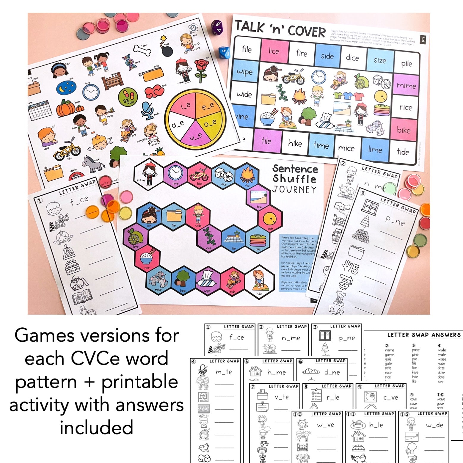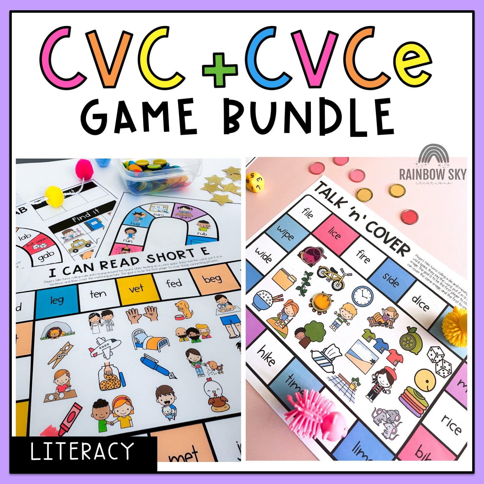 The ultimate bundle of games and hand-on learning activities to work on CVC and CVCe spelling in your early years classroom. Are you ready to engage your students? These CVC and CVCe literacy games are perfect for small group work and can be used all year round.
