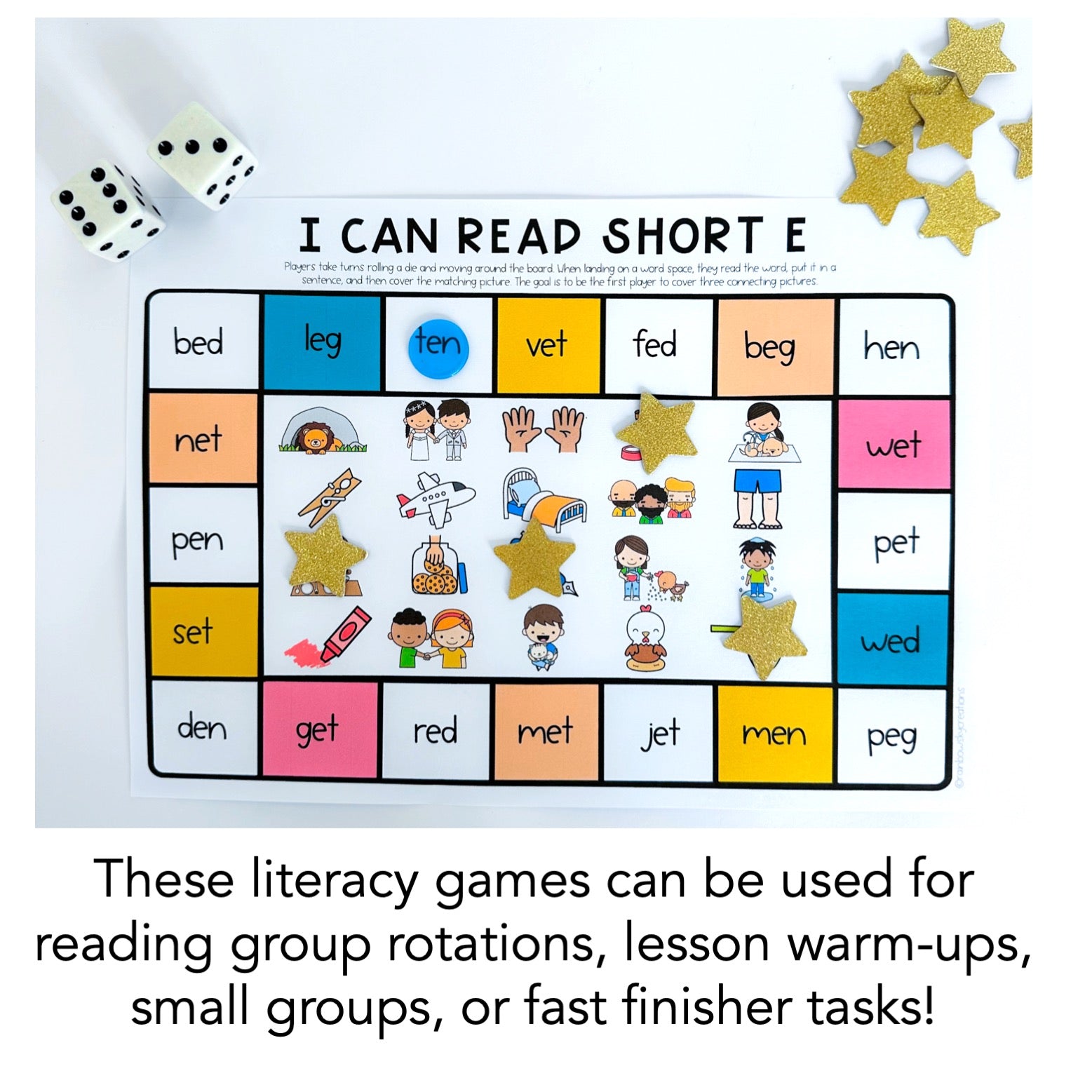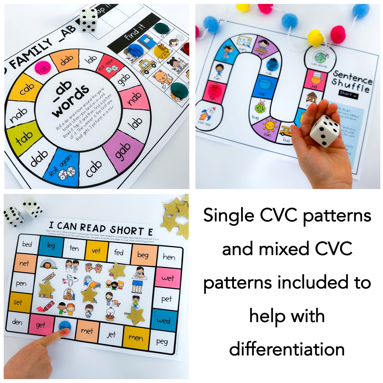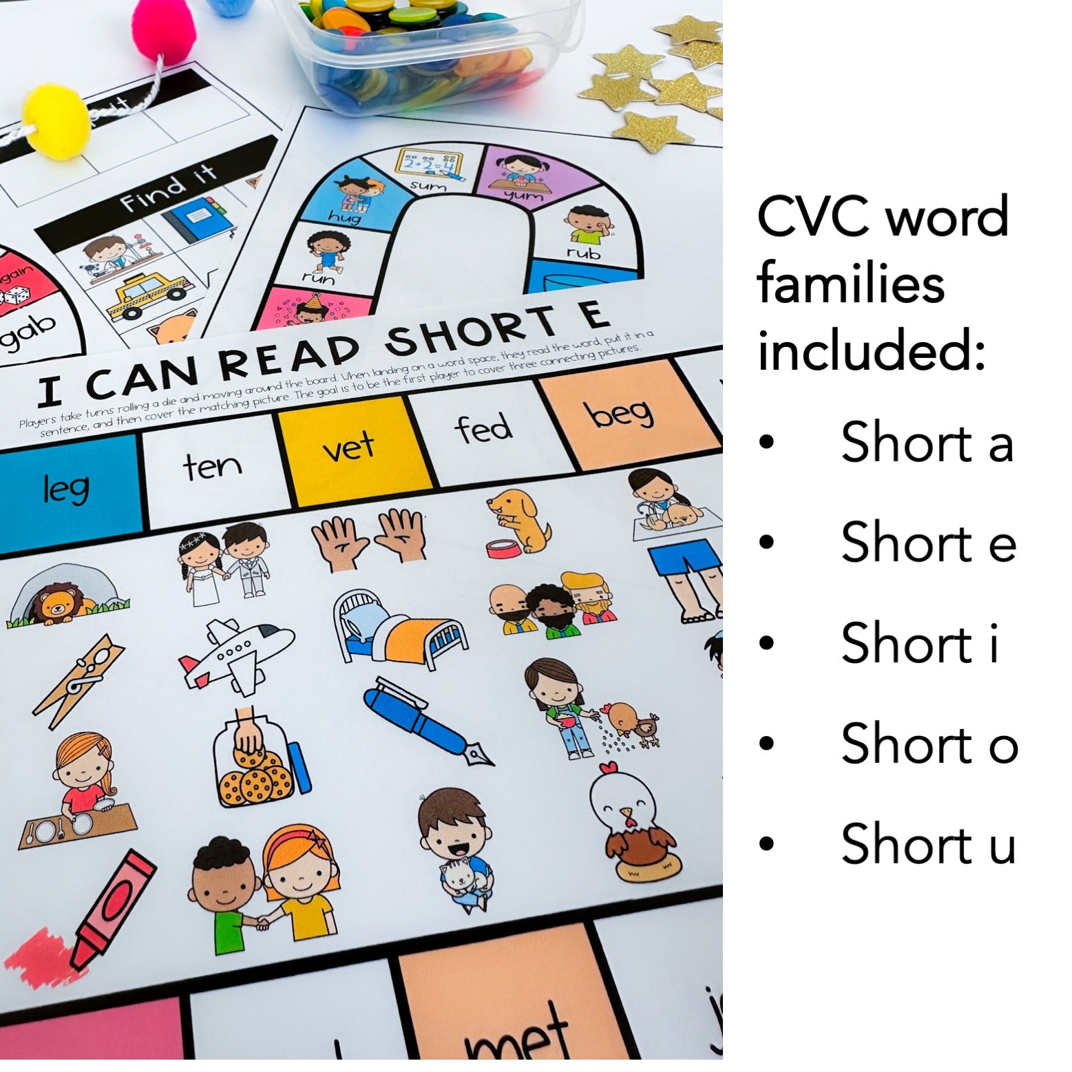 - I can read short vowel board game (5 versions a, e, i, o, u)