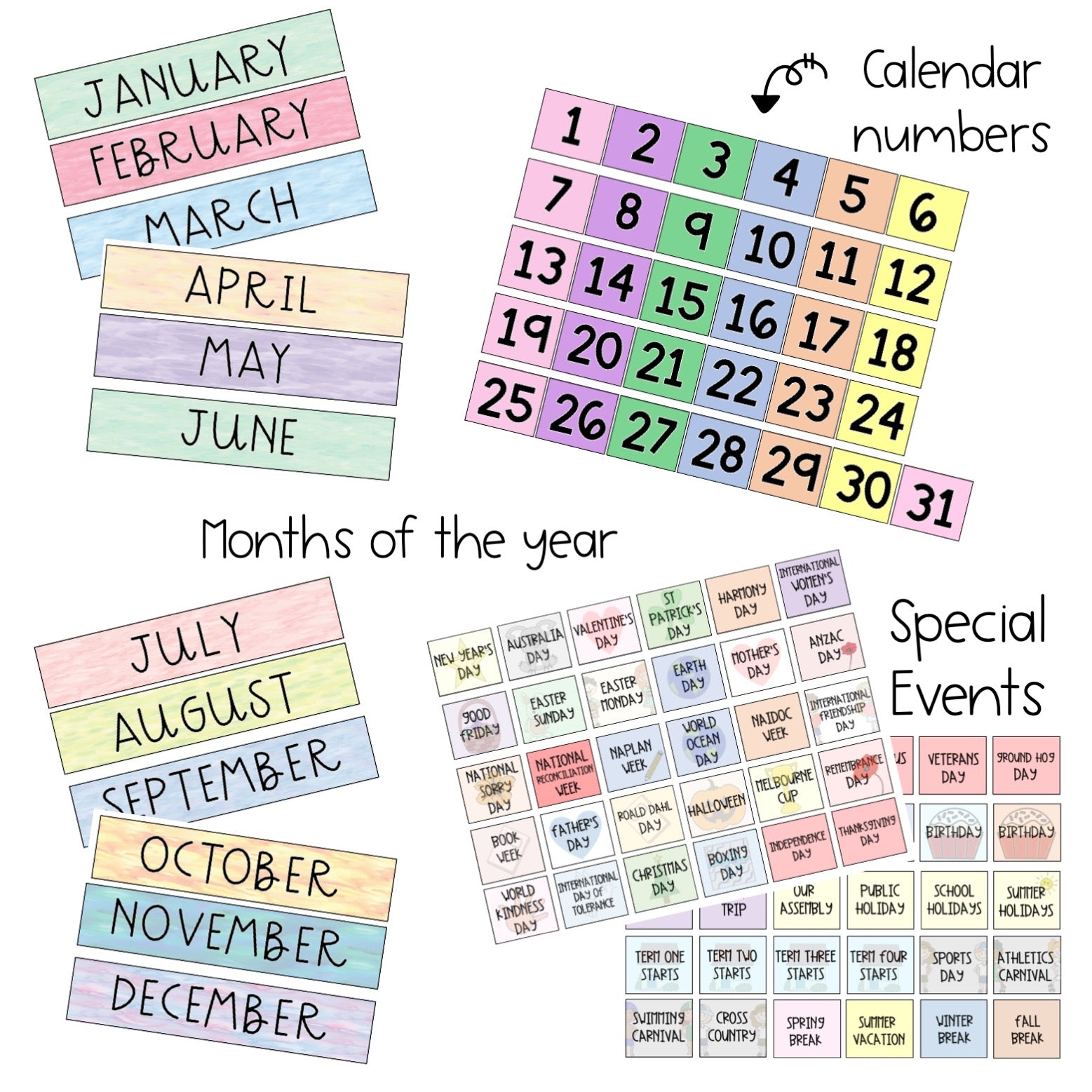 Transform your classroom with this versatile and stylish calendar bulletin display! Designed with a beautiful watercolor theme, this calendar is perfect for daily and monthly use, keeping your classroom organized and visually appealing all year round.