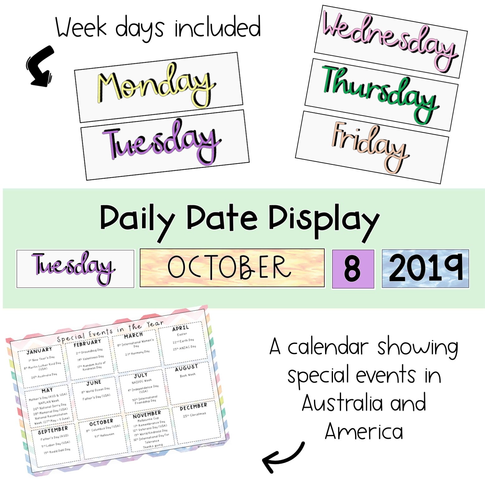 - Event Labels: Includes Australian and American events, plus extras like birthdays, public holidays, and school-specific events.