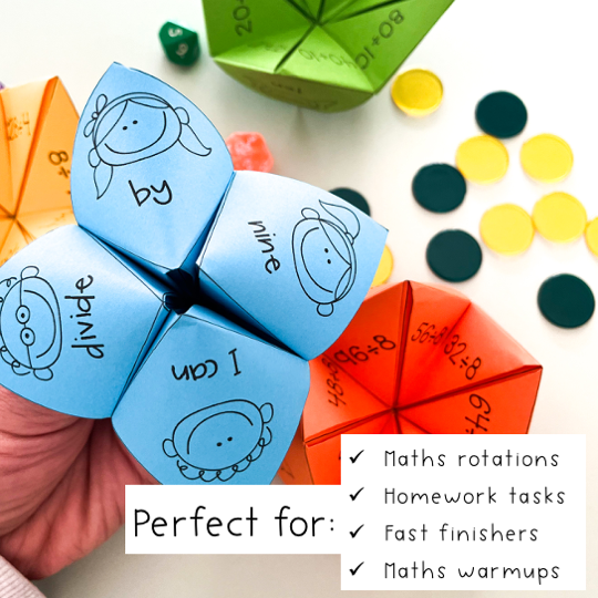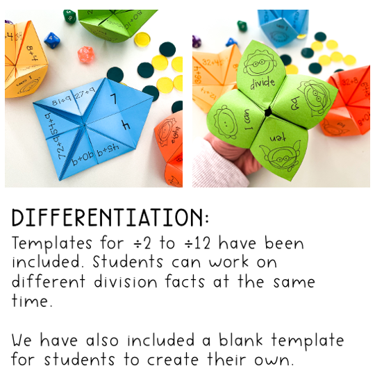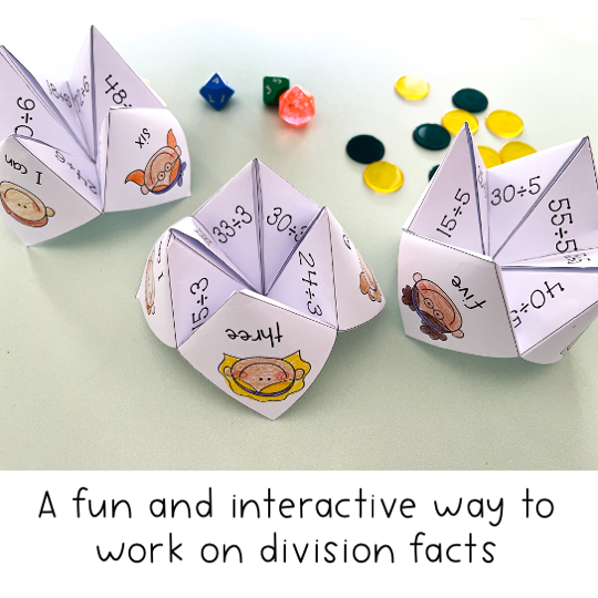 STOP for an awesome way to work on division fluency! These chatterboxes / fortune tellers / cootie catchers are the perfect way to work on learning times division facts in a fun and interactive way (plus, your students are going to LOVE them!)
