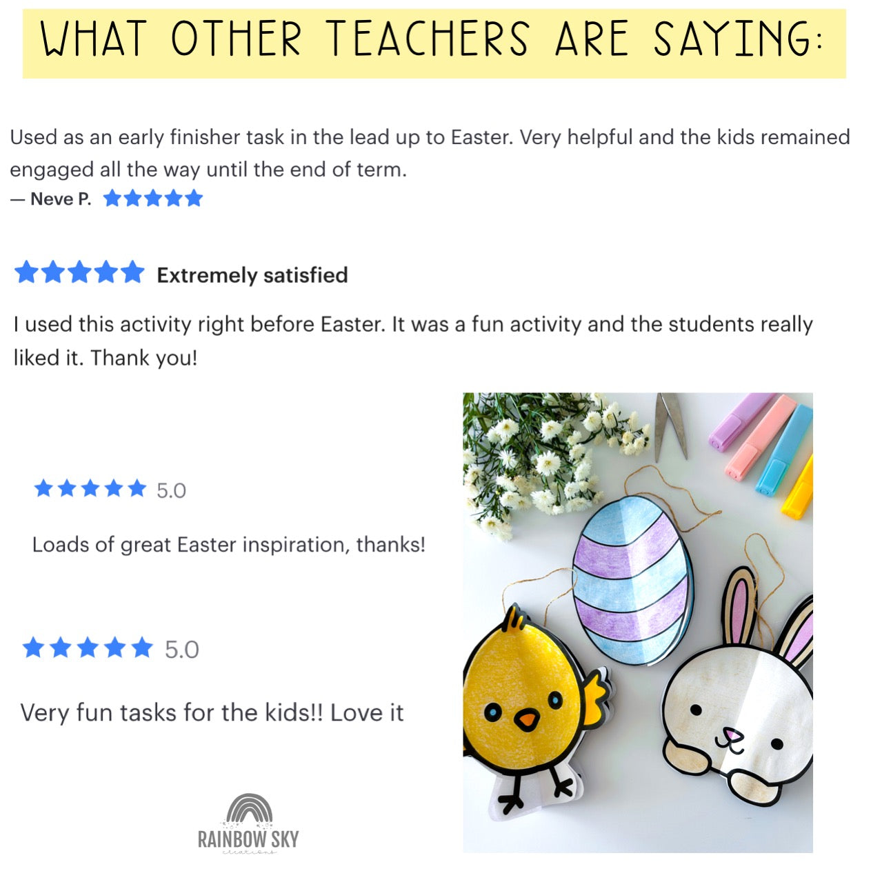 "As a substitute teacher this was a wonderful pack to have on me in the lead up to Easter. Will definitely be pulling it out each year - students loved the creative activities and the writing prompts and I love the variety. Thank you!" - Jasmine