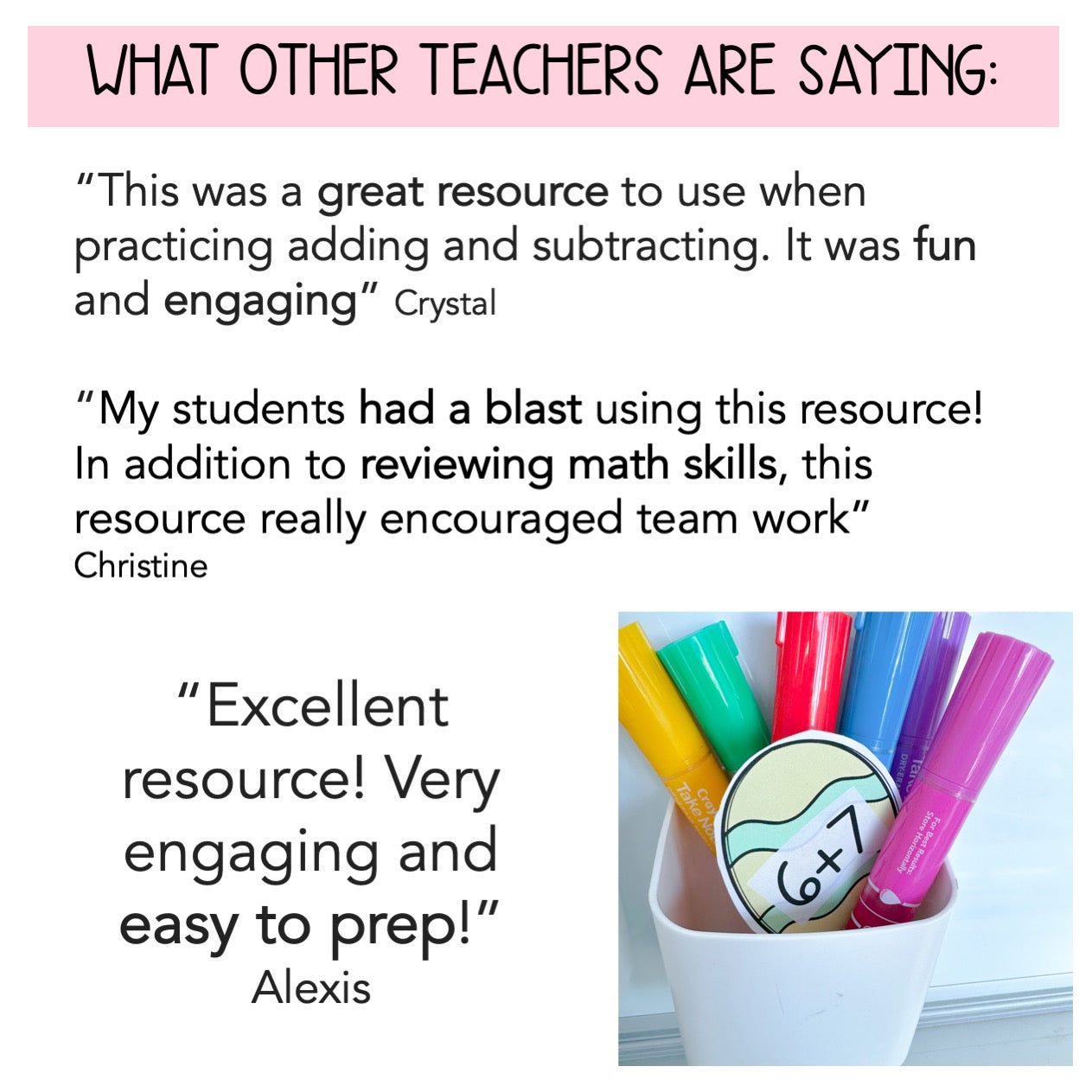 “This was a great resource to use when practicing adding and subtracting. It was fun and engaging” Crystal