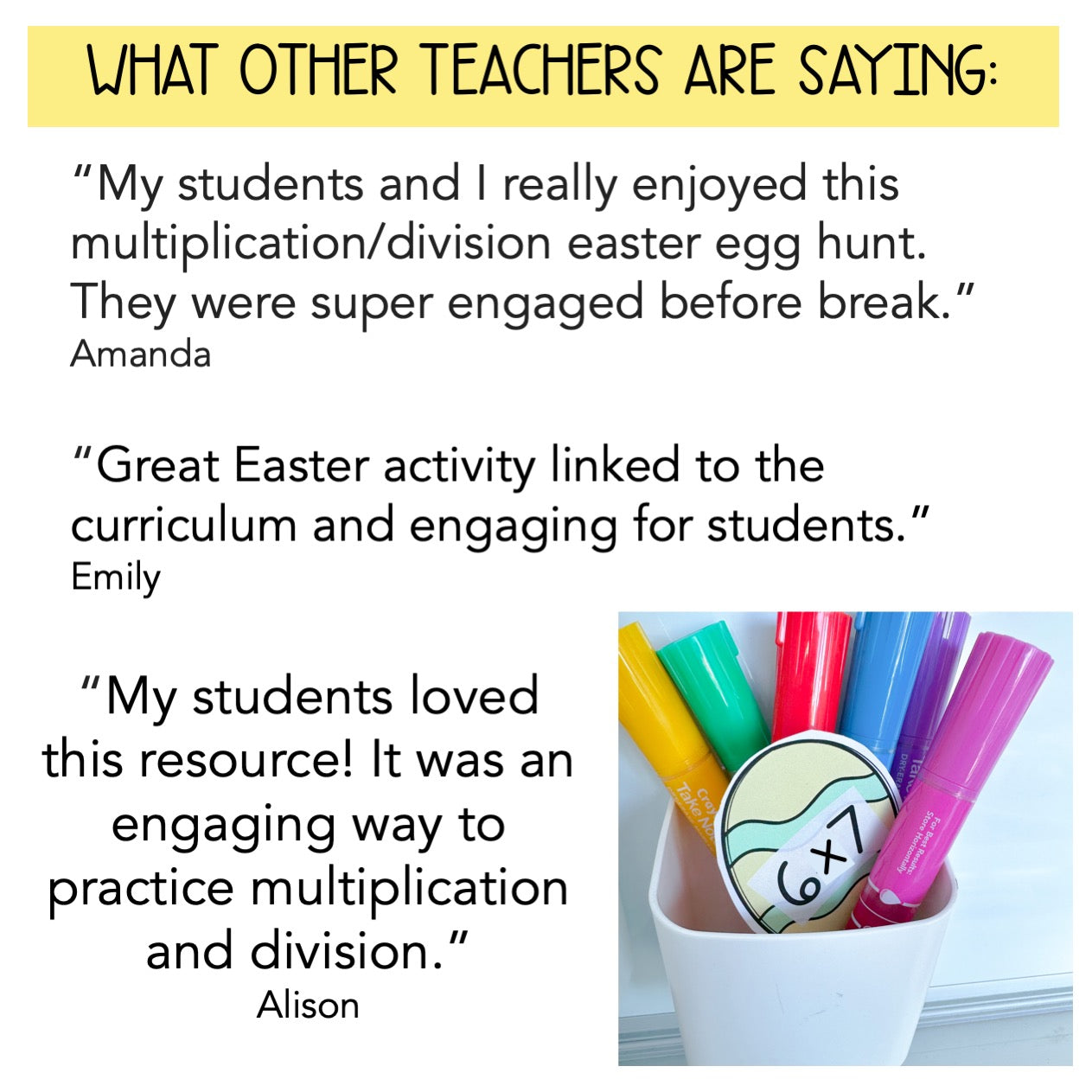 “My students and I really enjoyed this multiplication/division easter egg hunt. They were super engaged before break.” Amanda