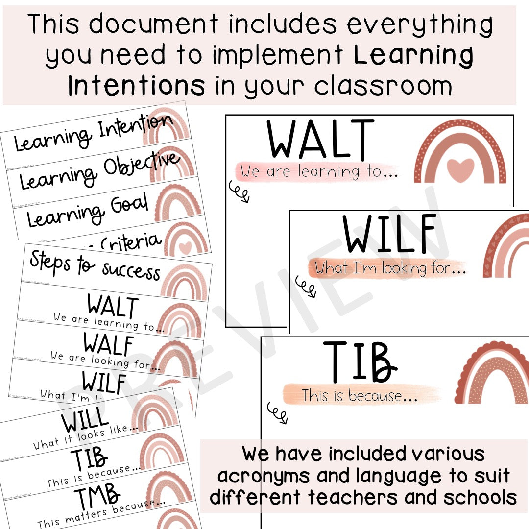 Editable Learning Intention Posters [Neutral Rainbow Theme]