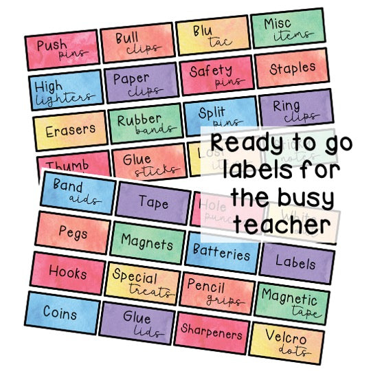 Teaching is so much easier when you have everything at your fingertips. Use these labels to create an organised teacher toolbox in a watercolour / rainbow theme!
