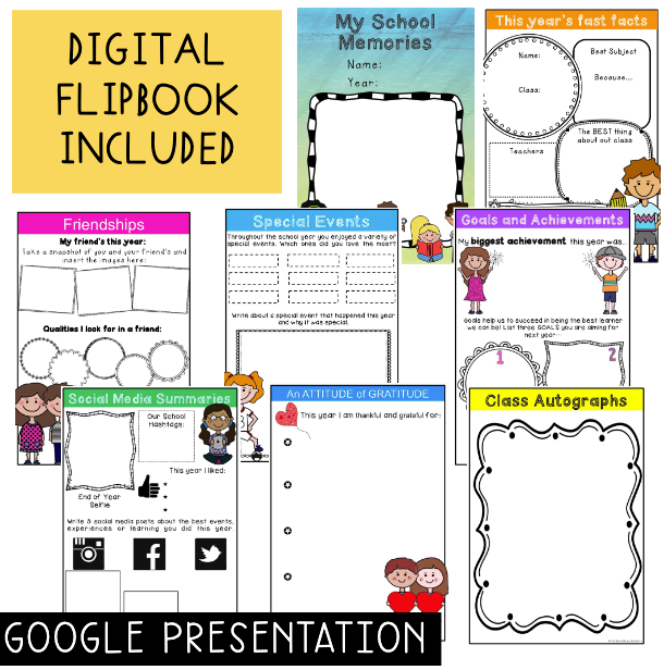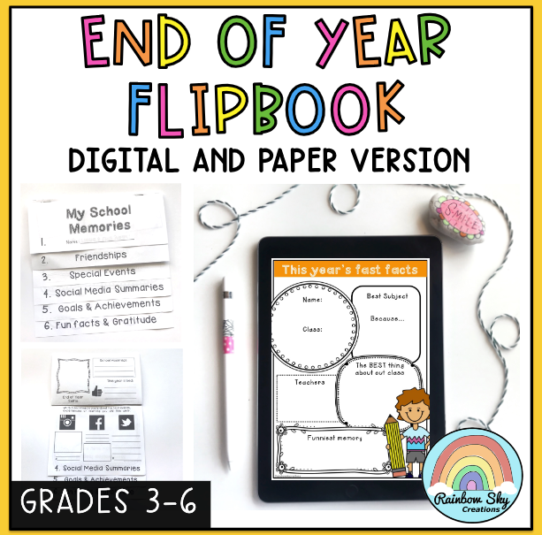 This is a fun activity to end the year with your students! This flipbook includes a paper and digital version which are a great way for students to reflect upon their year. There are six sections included for students to elaborate on and record their successes of the year.