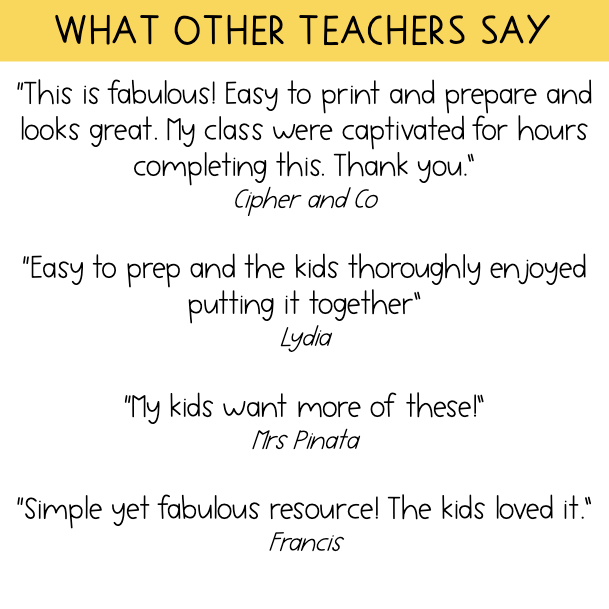“This is fabulous! Easy to print and prepare and looks great. My class were captivated for hours completing this. Thank you.” Cipher and Co