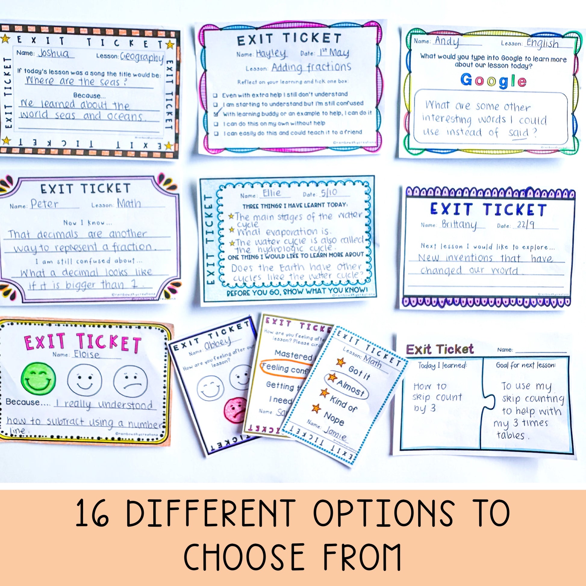 - 17 different exit ticket designs